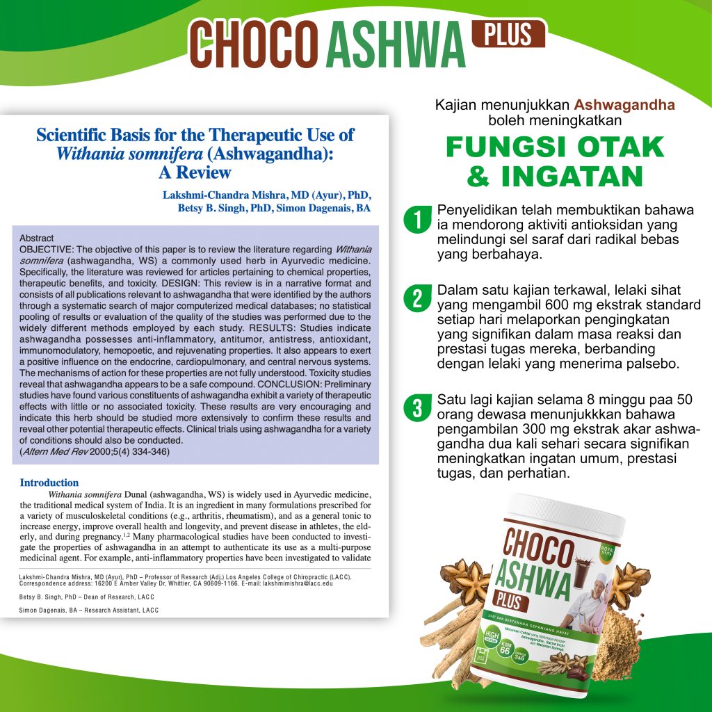 (Kandungan “Makanan Sunnah” berserta Campuran Ashwaganda & Sacha Inchi. Terbukti oleh kajian Pakar Dunia Sangat Baik utk Kesihatan)