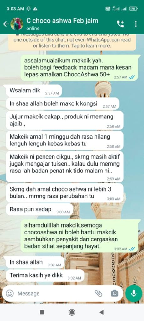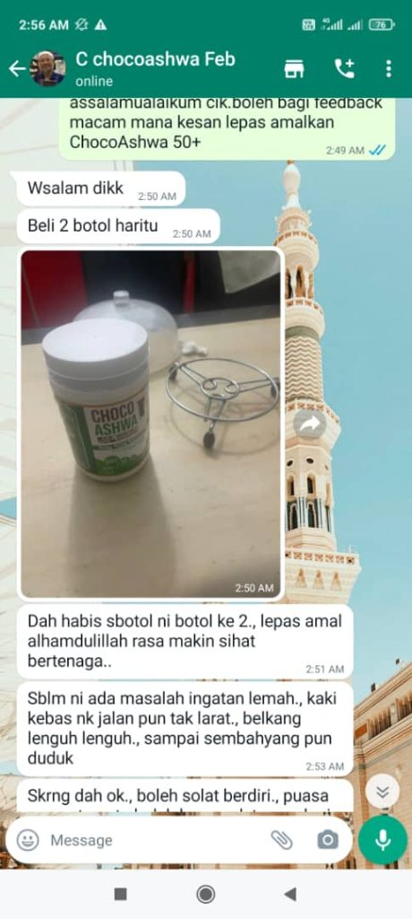 Semua lapisan Masyarakat Malaysia Mengamalkan Choco Ashwa 50+ dan mereka sangat-sangat berpuas hati. Walaupun mereka mempunyai Masalah kesihatan yang kronik, badan mereka kini kembali bertenaga.