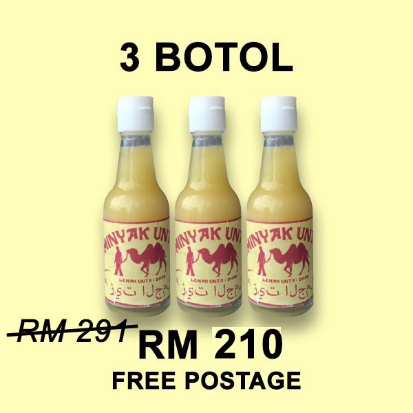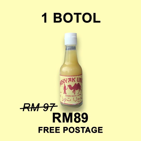 Minyak Raja Unta, Munggunakan Lemak Bonggol Unta Original. 3X Lebih pantas berkesan berbanding Minyak Pati Lintah dan gambir.